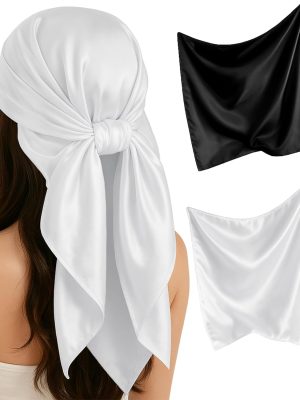 Satin Head Scarf for Women – 2 Pack 35 Inches Square Scarf, Sleeping Hair Wrap Bandana